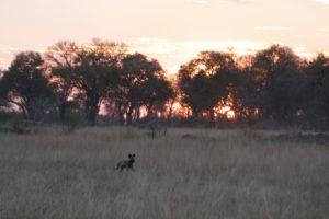 We finished at Tao Camp in NG18 (referring to concession 18 in the Ngamiland district) on October 6th after our first 12 days in the bush. It was sad to leave a place where we had become so comfortable, but our time there finished with a high point. On our final evening, everyone was getting ready for dinner and rinsing off after some frisbee-throwing when one of our instructors informed us he had seen a pack of wild dogs near camp.