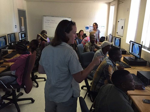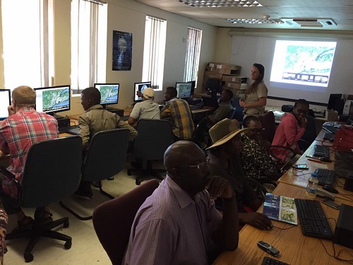 After lunch the training continues. Excel short-cuts are divulged. GPS coordinates are uploaded into Google Earth, and research transect runs are plotted on satellite-drawn images. The roads of Maun are travelled from the rolling chairs in the computer lab.