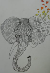 This particular drawing above was inspired by Toothpick! Toothpick is the nickname we gave a bull elephant who came and visited the river near our camp in NG18. He got his name for the unique tusk which distinguished him from the other resident elephants. We got to watch him and his buddy play and bathe themselves in the water and watch them for over an hour as they ate grasses and relaxed until they faded away into the Botswanan bush once more.