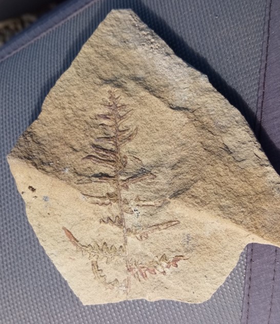 Once we reached the tree line, we stopped for lunch. Then we climbed up the steep rocky slope looking for fossils. The rock formations were breathtaking with the sloping lines of multicolored strata. After searching for almost an hour without seeing any fossils, I was beginning to lose hope. Benjamín found the first fossils and suddenly it seemed like there were fossils everywhere I looked. Some of the leaves still had color with surprisingly vibrant orange and reds. These fossils were in the José formation.