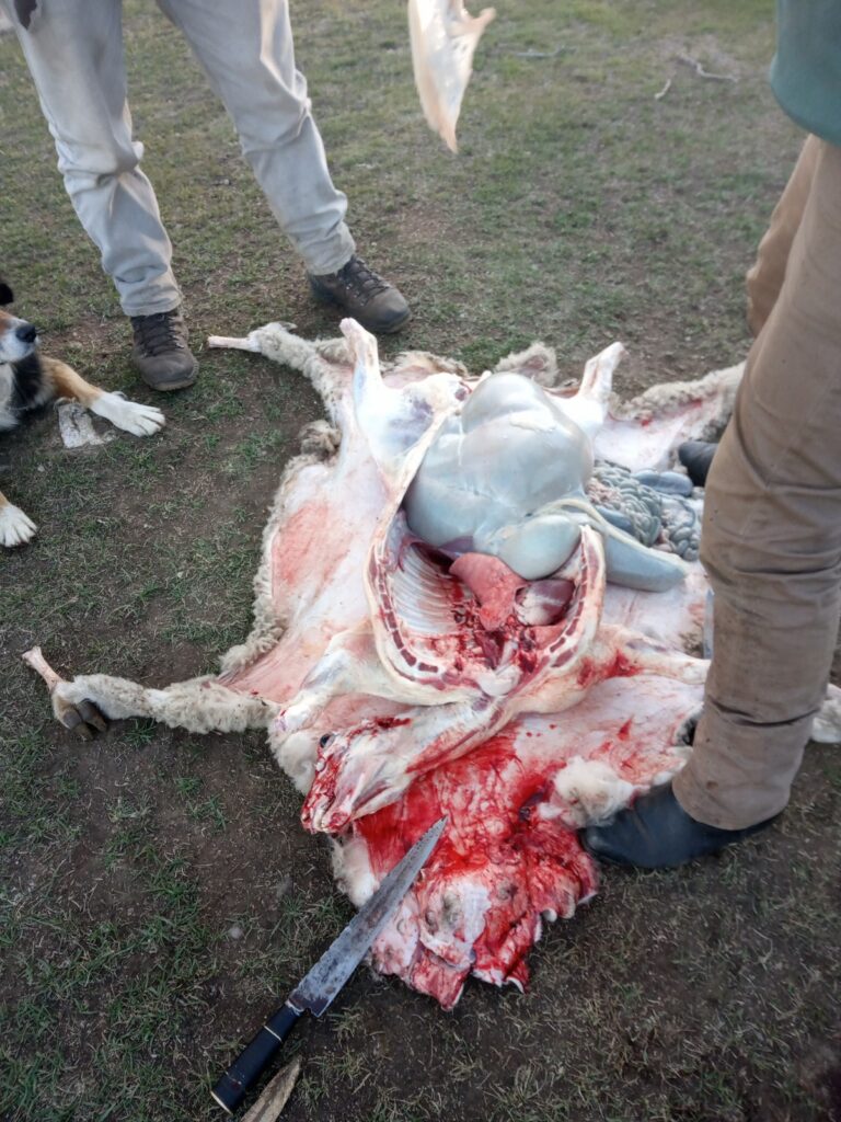 The first time Gavino told us we were going to “matar un cordero” I thought he was joking about slaughtering the lamb we bottle fed each morning. I was only partially relieved to find out we weren’t going to be killing that lamb, but a different one. After finishing our afternoon mate, we went out stopping at the galpón (shed) to sharpen two knives. We walked up to the pen where we had herded the sheep earlier. Gavino slowly made his way between the sheep and eventually grabbed one by the back legs, flipped it over, and handed the front legs to me and the back to Jack. We carried it to where we’d left the knives and positioned its head over a pot. Never have I been so close to an animal that was about to die. I could feel it’s blood pumping beneath where my fingers grasped and felt it looking up at us. I figured there was a 50/50 chance I’d cry, but this was a part of their life. So, I silently said thank you to the sheep and tightened my fingers around its legs. Gavino sliced directly through its neck with one motion. I can’t say it was instant as it let out a final bleat, but it was fast. The blood that drained into the pot was the brightest red I’ve ever seen and afterward Gavino offered it to the dogs. Slicing up the legs and torso he peeled the hide from the carcass. The only thing that went unused was the fur matted with burrs. We hung up the meat in the galpón and I fed the dogs slices of stomach and intestines while the cats got the kidneys. We would eat everything else.