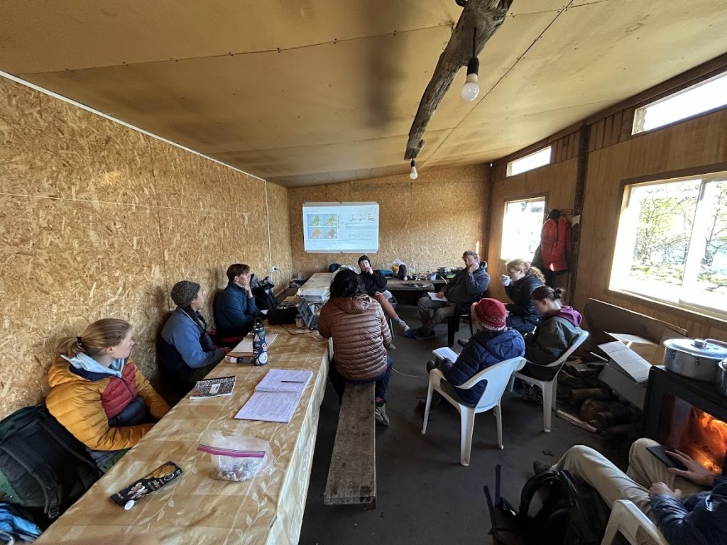 Each day, the quincho hosts breakfast, lunch, and dinner. Between meals it transforms into a classroom, conference room for trip prep, or whatever configuration we need for the day. (Fun fact: The tables and benches in the quincho were milled from Lenga (Nothofagus pumilio), one of the dominant canopy tree species in the area.)