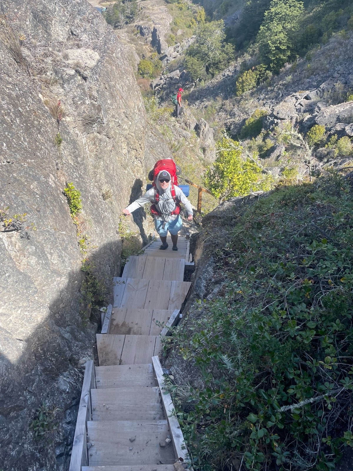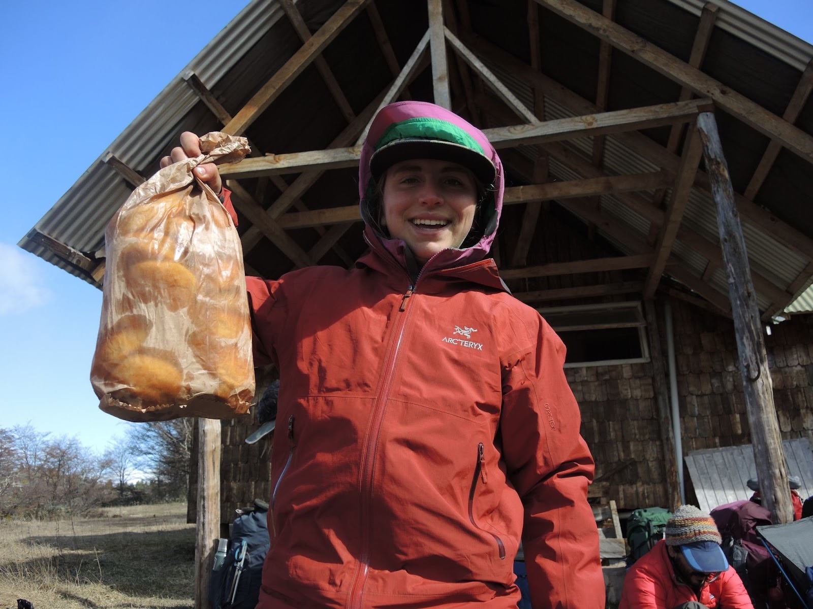 The next morning we began the hike back along the trail to complete the loop. While we were packing up, Oskar had found a lone piece of bread, forgotten at the bottom of a slick bread bag. His eyes lit up with joy and a couple of us gathered around, snatching bites of day-old bread. With the superfood in our tummies, we set off on trail. Our instructors Claudia and Gabe helped us identify common Chilean plants such as Sauco de Diablo, more calafate, and bird calls such as the rayadito and a possible owl. Along the hike, we saw evidence of uncontrolled burns in the area. Charred and broken trees and black marks on the ground could have pointed to the campers not putting out their fires correctly or things that got out of control. It was important to note because it marked the impact of misproper human use in protected areas. After a rollercoaster hiking up and down hills along the lake, we settled on a riverside spot for our lunch. The water along the river looked like it belonged in the tropics. It was clear blue and turquoise, a sight that looked inviting and some of us jumped in, including our instructor Jose. The sun was out and the views were gorgeous as we continued along the trail back to where we started to drive back to our basecamp. The trail took us 22 kilometers along steep terrain and beautiful views and was fueled solely on fresh-baked bread. It was a wonderful introduction to the beauty of Patagonia and the beginning of my immense gratitude for being able to study, learn and explore such a place.