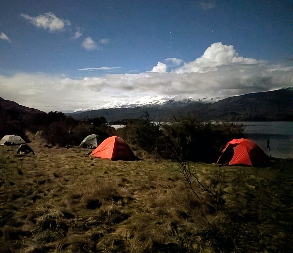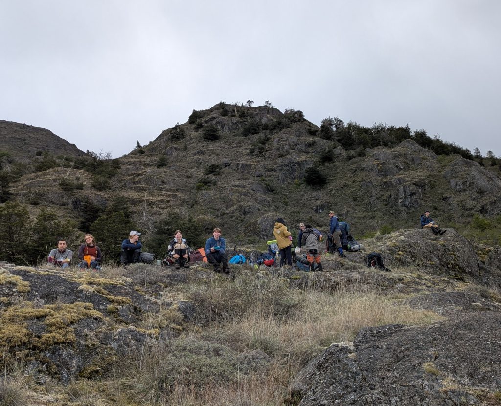 At base camp, we continued with our classes, learning about the plants, animals and fungi that we were likely to find in the region, and preparing us for our first backpacking trip. Although the days of rain had ended, when we got out on the trail, we soon found that the rain had overflowed riverbanks, washing out the trail and turning low areas into lakes. The trail took us through the Tamango section of the Patagonia National Park running along the Cochrane River and taking us to a grassy site on the shores of Lago Cochrane. Despite frequent backtracking to subvert newly created lakes and unplanned river crossings, we persevered, encouraged by the stunning views. I was constantly amazed by the new plants, mushrooms and birds that we learned about in the first weeks of classes and connecting them to field examples. On the return trip, we hiked straight up on a ridge above the river providing fantastic views and allowing us to observe and take field notes on the changing flora and fauna. The snowy mountains and crystal clear river would have been right at home on any computer screen saver.