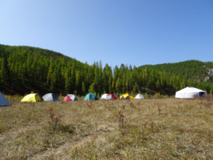 We were spending the night at Lake Khuvsgol, with some of the family of Tumursukh, director of the Horidol Saridag Strictly Protected Area (where we’re working) and living legend. A beautiful place on a beautiful lake with lovely kind people. They have a cool dining hall with lots of impressive dead animal bits, where they fed us a delicious dinner of chicken (more on this later), and set up the sauna for us. We dipped in the lake, hung out in the sauna, and went to bed.