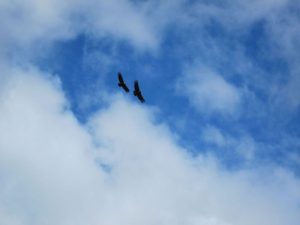 The condor has a wide distribution and can be found throughout the west coast of almost all of South America: particularly within the Andes mountain range. They prefer to inhabit grasslands and alpine areas and can be found as far north as Venezuela and as south as southern Chile. When traversing through BNP El Mosco, near Villa O’Higgins, we were able to observe many condor nests which were on rocky cliffs, inaccessible to almost any flightless organism. While adult condors have no natural predators, their eggs are vulnerable. Nesting on cliffs prevents egg predation and produces a safe environment for their young. We witnessed condors fly off their nests and begin to characteristically hover over the valley. Instead of expending energy flapping their wings to keep them aloft, they utilize thermal upwelling air currents to allow themselves to remain suspended in the air indefinitely when searching for food.