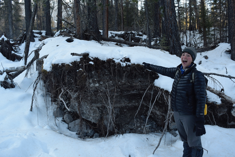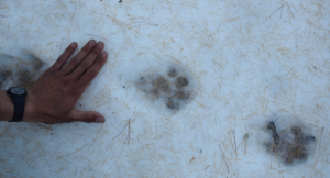 Winston was the newly given name to the wolverine. Winston’s hobbies include trotting through knee-high snow, eating lots of meat, traveling A LOT, and occasionally pooping. We were super interested in the pooping part. If only we could stumble across a fresh pile of wolverine poop; a dream that we all held in our heads. The DNA lies in the poop, we all thought to ourselves! So, in order to spearhead some Wolverine Foundation work, we decided to take it upon ourselves to find a poop and deliver it to the Wolverine Foundation’s executive director. Luckily, we had her as one of our instructors; Rebecca. So, off we went in search of the rare Winston poop to bring back to Shiluus camp.