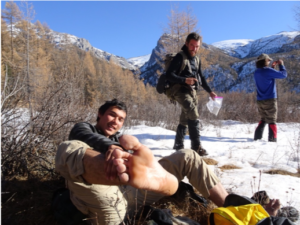 In order to get all of the cameras in a timely fashion, as we had a time crunch (no surprise), we had to split the group for most of the days. In some very rare cases, we had to split the split group. However, this only happened on special occasions usually involving following tracks. Most of the days were split into two different hikes: the long hike and the short hike. We rotated through these in order to give the long hikers from the previous day a rest. It was unfortunate that all ten of us couldn’t stay together for the whole process, but each split group (sometimes each split split group) went on some remarkable adventures together. The end of the day was filled with excitement as we talked about our adventures with each other. Those little moments when we would share our stories in the ger (yurt) while the fire cracked and sparked as we refueled our bodies with Nyamka’s food, are the moments that we will all hold onto.