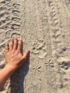 Our instructor, Dix, grew up in the Delta and has worked tracking wild dogs and other predators in the area for several years. He leads our natural history classes during which we get to explore the Delta on foot. The Delta is a prime location for tracking since the sandy, alluvial soil preserves details of tracks for days. The roads are particularly good places to look for tracks since many animals use them for travel and territory boundaries. On transect, Dix often has his head out the window scanning the road. At first the rest of us didn’t want to look down, afraid we’d miss something. We quickly learned better and can reliably be found with our heads out the window. It served us well in November, when my car picked up wild dog tracks and veered off our route to follow. We trailed them a kilometer down the road until they turned off into the brush. As we got ready to give up and turn around, a car approached from the opposite direction. Their driver had just left the other half of our group with a pack of wild dogs! Our tracking hadn’t led us to the dogs, but it got us close.