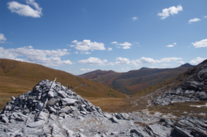 Our first base camp on the backpacking trip was in a beautiful meadow along a river in the Horidol Saridag, and it became both a great place to return to each evening and a place some of the group looked back on with some disgust. For me, getting up every morning, eating a hardy breakfast of müsli (granola), peanut butter, milk powder and water and then heading off to the talus patches high up on the adjacent slope from camp was something I both looked forward to and somewhat dreaded. The amazing views of the Darhad Valley below, the mountains of the Horidol Saridag, and the fresh mountain air was invigorating and stunning. However, I knew that large granite boulders would be welcoming me and my leather hiking boots with sharp edges and constant movement, which if you weren’t careful, you could easily end up ass over tea kettle with some large purple blotches the next morning. It also meant that I would be looking for small pika hay piles and piles of pika poo for hours at a time. And I don’t think I was alone, because on one of the days I overheard Klara announce, “I think the highlight of my day is this big pile of poo,” not something you usually hear on a nice day hiking in the mountains.