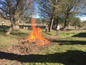Perhaps the biggest adjustment for the week was our schedule and meals – although we offered, they kindly told us we didn’t have to get up to do chores with them at 6:30am, and instead met them for breakfast of bread, hot drinks, and eggs at 8:30am. After that, we’d do work until 1pm, have a giant lunch of usually soup, beans, a main dish, bread, and some veggies. My favorite was a chard “tortilla” or frittata that we had with soup and rice and potatoes and beets and lettuce and bread and juice. At lunch we ate so well! We then had a siesta time until 3:30pm, with the rationale that it is too hot to work. We found it great timing because many of the days we left the big meal really needing to be horizontal. At 3:30pm we’d continue working, until 6:30 or 7, at which point we’d hang out until a snacky dinner at 9pm, with more bread and jam and hot drinks. Unlike our expectations of Chilean time being quite relaxed and running late, we were always expected to be punctual and were chastised (jokingly) when we arrived to breakfast late!