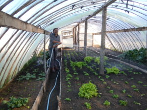 They have three greenhouses (invernadores) in which lettuce, chard, and herbs are growing.
